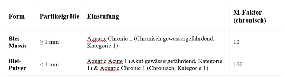 Diese Neuregelung führt eine harmonisierte Einstufung für metallisches Blei ein, die es in sich hat. Die bereits bestehende Einstufung als reproduktionstoxisch wird nun um die Eigenschaft "umweltgefährdend" ergänzt.
